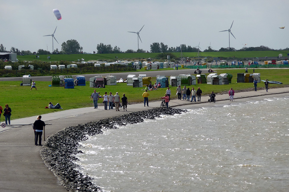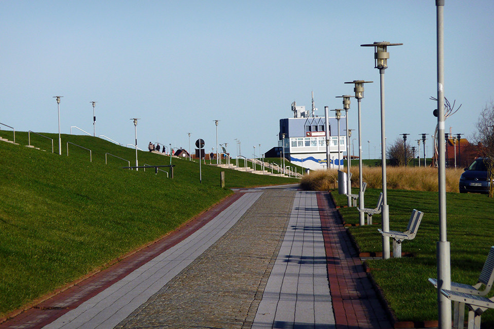 Von Norddeich kann man mit den Frisia-Schiffen Tagesausflüge zu den vorgelagerten Inseln Juist und Norderney unternehmen.